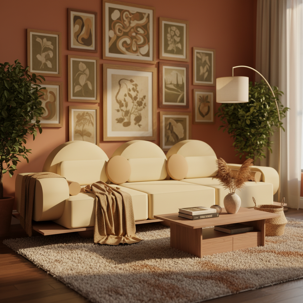 e estofados suaves cria um diálogo harmonioso entre